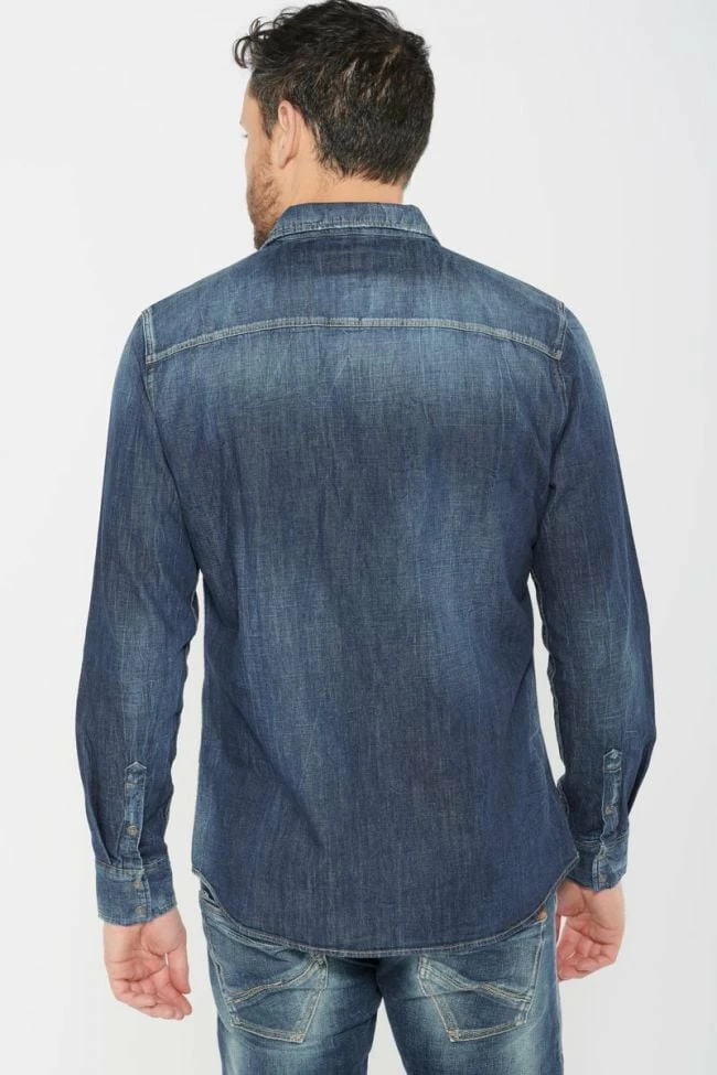 Cette chemise Juanito en jeans bleu est très tendance avec ses deux poches poitrine à rabat, son délavage et ses petites abrasions. Pour plus de confort, la fermeture est à boutons pression tout comme les poignets.