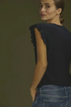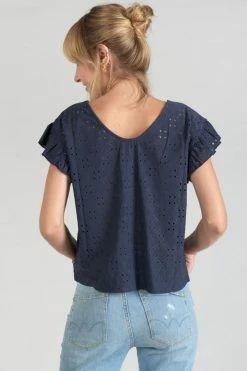 LE TEMPS DES CERISES Top Pedrina Ajouré Bleu Marine