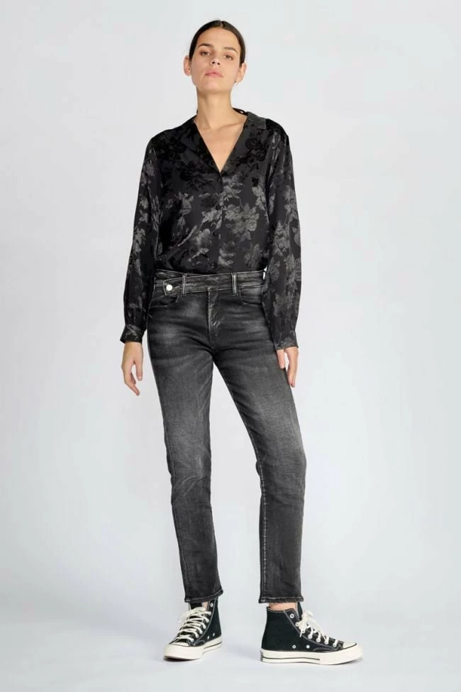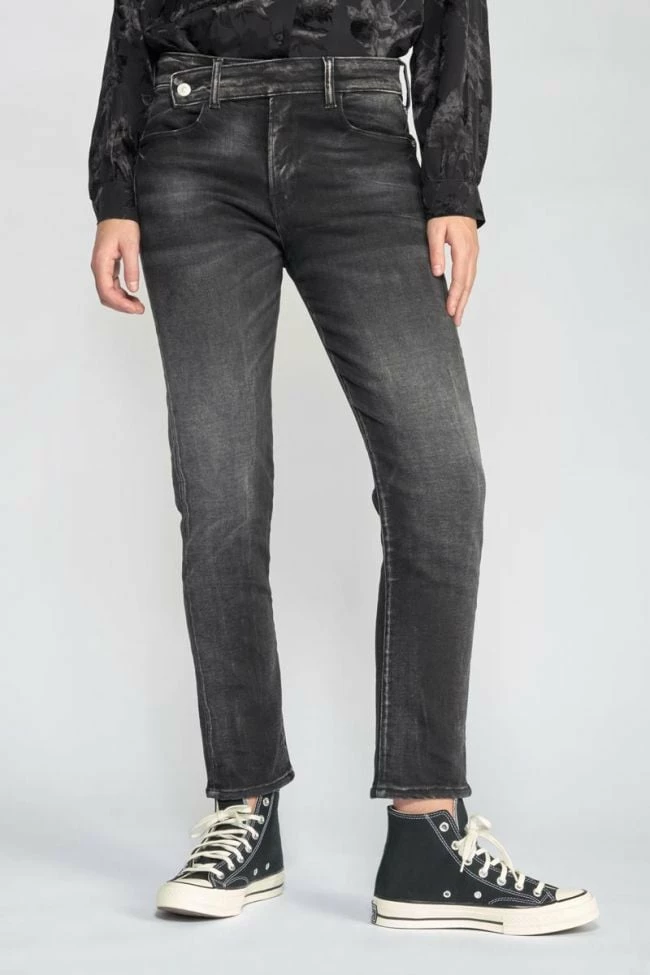 Le jeans 400/17 est la nouveauté de votre dressing avec sa ceinture fantaisie à double boutons visibles ! Resserré au niveau des hanches et taille haute, il mettra en valeur votre taille à la perfection tout en gardant un look tendance et décontracté avec grâce à sa longueur 7/8ème et sa coupe droite.