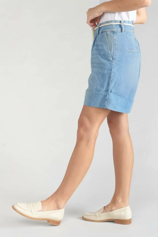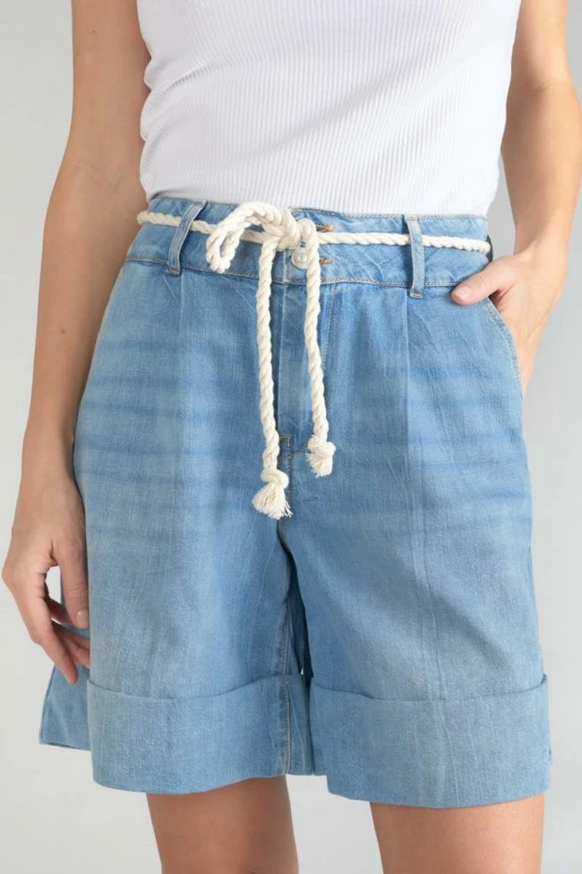 Ce short Hellia taille haute idĂ©al pour l’Ă©tĂ© avec son jeans lĂ©ger et fluide, vous donnera un look tendance avec sa coupe bermuda large au niveau des cuisses et ses larges revers. Pour plus de style, deux boutons visibles au niveau de la taille.