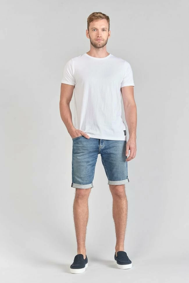 Ce bermuda à toile très stretch vous donnera un look casual avec son délavage bleu.