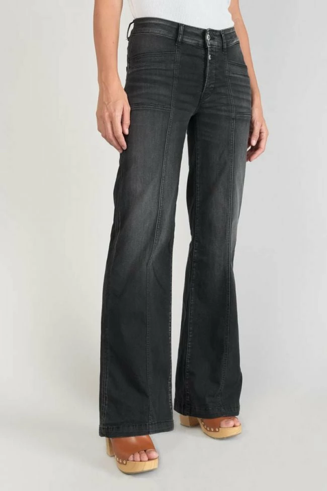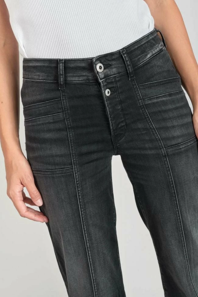 Le Flare, jeans féminin par excellence, s’allie à l’effet pulp. Jeans iconique qui fait de belles-fesses. Le Pulp Flare taille haute et son effet repulpant subliment les fesses et sculptent le fessier grâce aux pinces latérales, aux arrondis sous la ceinture et aux poches idéalement placées. La taille haute est l’allié parfait pour gainer le ventre et allonger la ligne. Ses jambes sont évasées à partir du bas des cuisses pour affiner les jambes, élancer la silhouette et donner une allure flatteuse.