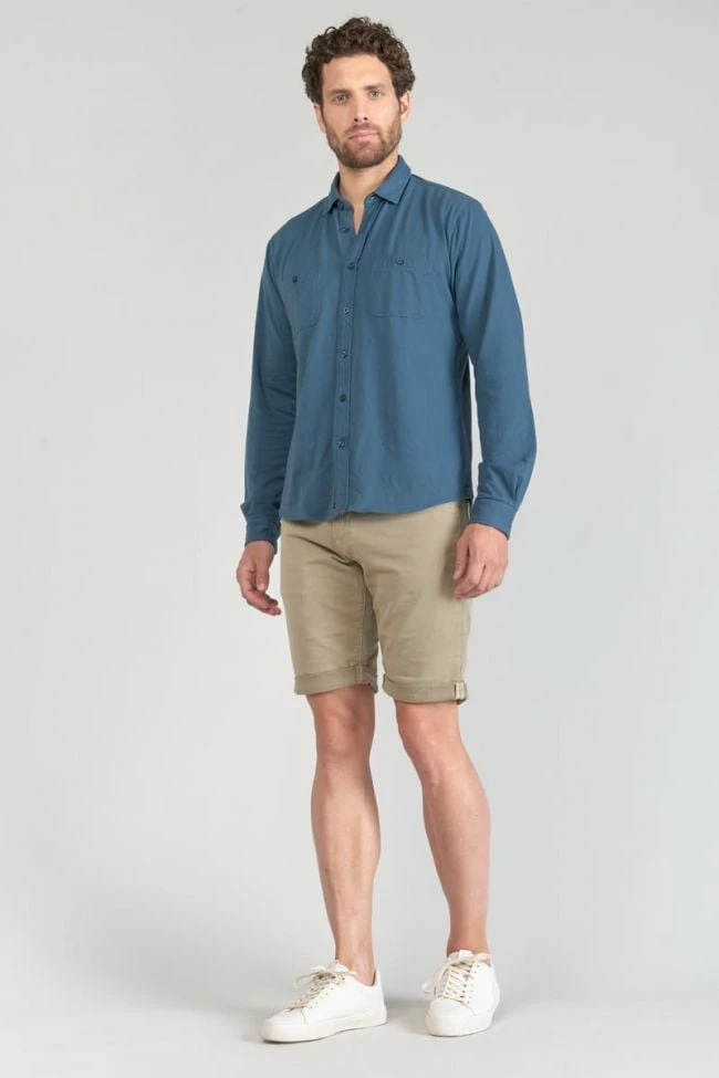 Cette chemise Adol est agréable à porter avec son jersey doux et léger, mais également tendance avec sa couleur bleu pétrole et ses deux poches carrées boutonnées au niveau de la poitrine. Pour le détail, des boutons nacrés bleus et des poignets aux revers avec liseré personnalisé « Le Temps des Cerises ».
