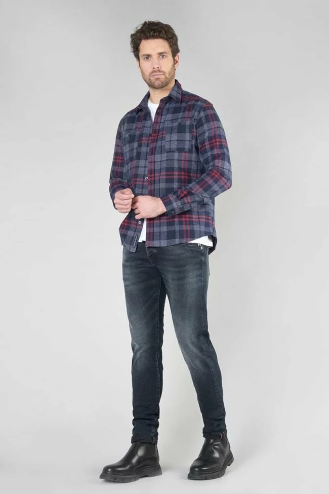 Cette chemise Baste vous donnera un look casual avec son tissu doux à carreaux bleu marine et bordeaux ainsi que ses poches poitrines boutonnées. Pour le détail final, un mini liseré drapeau bleu, blanc, rouge dans le dos.