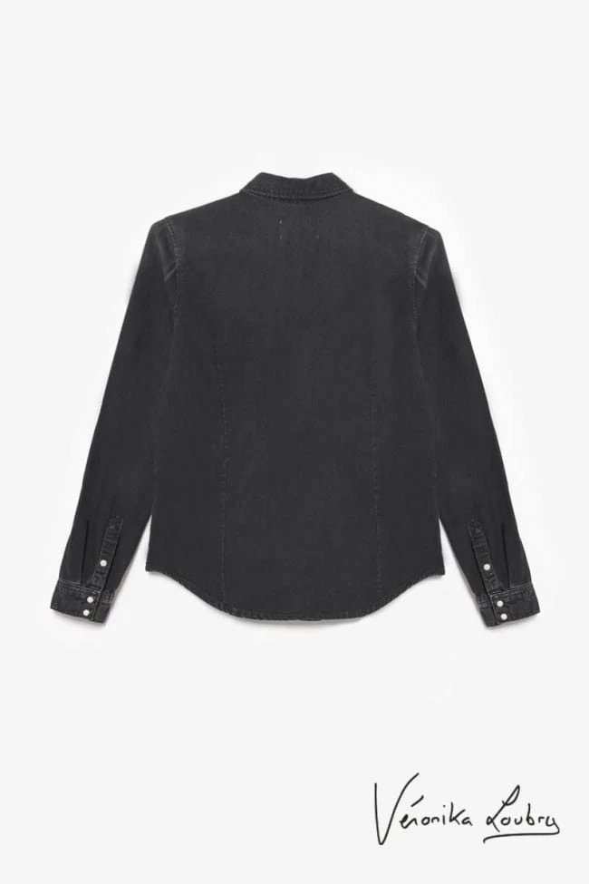 Cette incontournable chemise en jeans noir Josy a un look casual grâce à sa coupe, tout en étant féminine avec ses boutons ornés de pierres blanches à la fermeture, aux poches poitrines et aux poignets. Son délavage apporte le côté décontracté et tendance à la pièce.