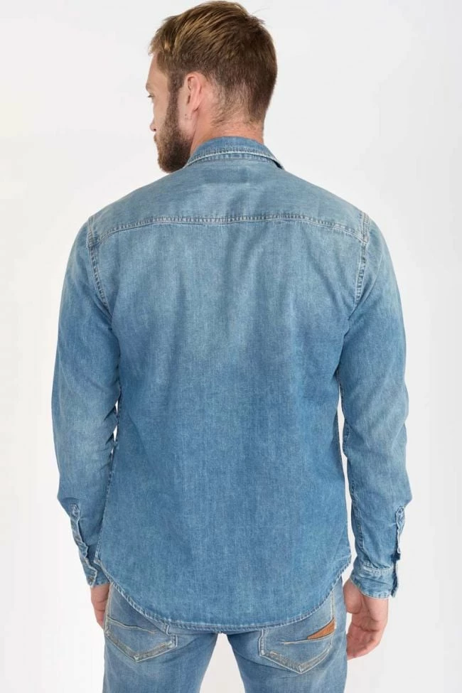 Cette chemise Juanito en jeans bleu vous donnera un look tendance et branché grâce à ses abrasions, son délavage et ses boutons pressions.