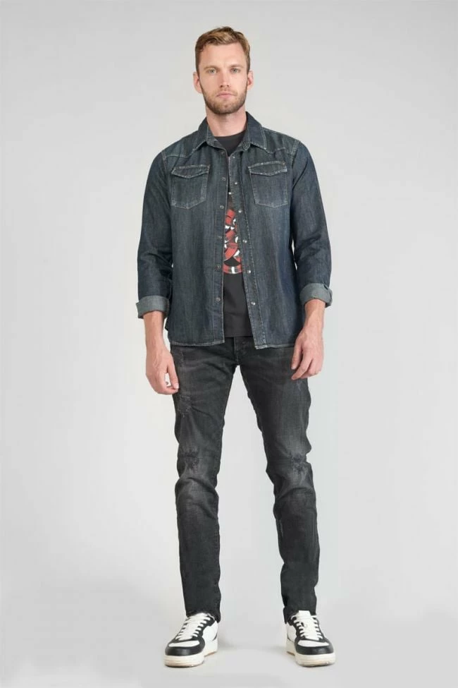 Cette chemise Juanito est très tendance avec son jeans brut, ses deux poches poitrine à rabat et ses petites abrasions. Pour plus de confort, la fermeture est à boutons pression tout comme les poignets.