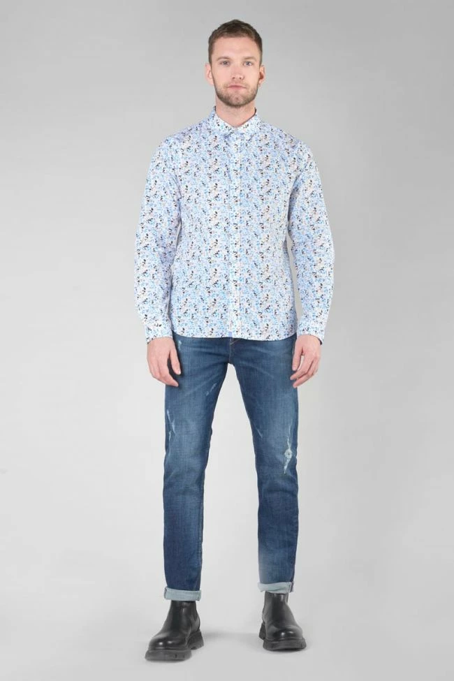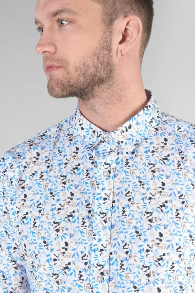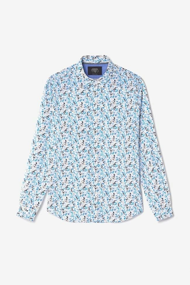 Cette chemise Mariot vous donnera un look casual élégant avec son motif feuilles dans les tons de bleu, noir et beige, ses boutons nacrés blancs et ses revers aux poignets avec liseré personnalisé « Le Temps des Cerises » et empiècement contrastant. Pour le détail final, un mini liseré drapeau bleu, blanc, rouge dans le dos.