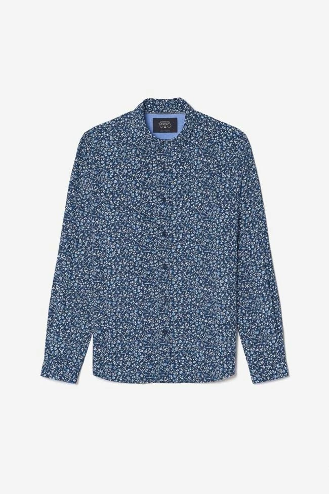 Cette chemise Nobel bleu marine vous donnera un look raffiné et élégant avec son motif fleuri bleu et blanc, ses boutons nacrés bleus et ses revers aux poignets avec liseré personnalisé « Le Temps des Cerises » et empiècement contrastant. Pour le détail final, un mini liseré drapeau bleu, blanc, rouge dans le dos.