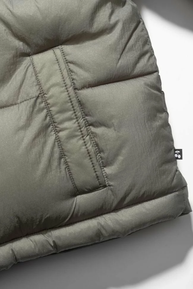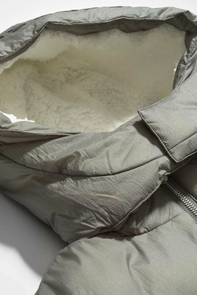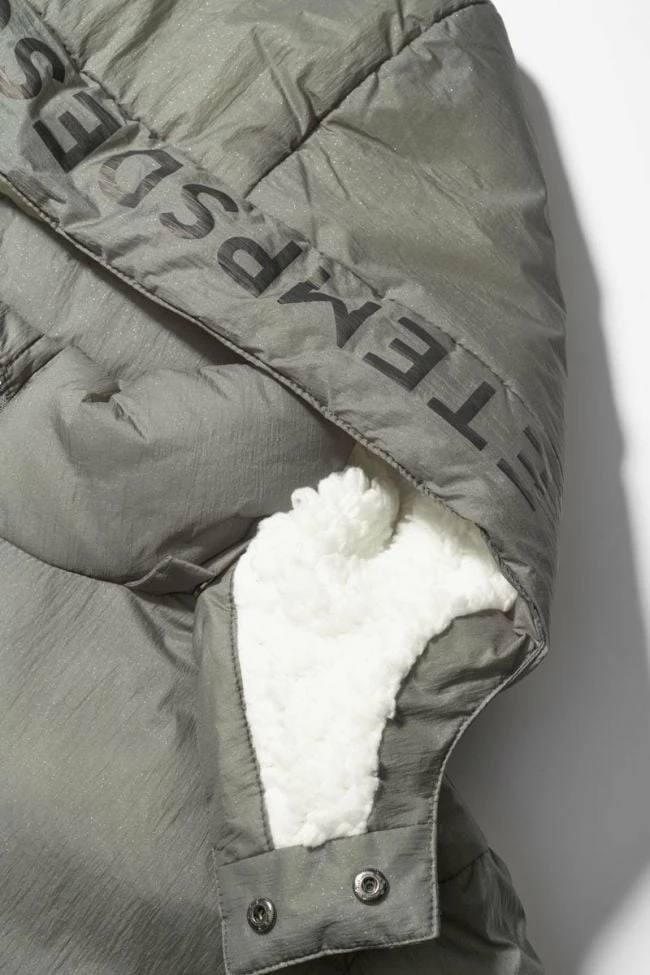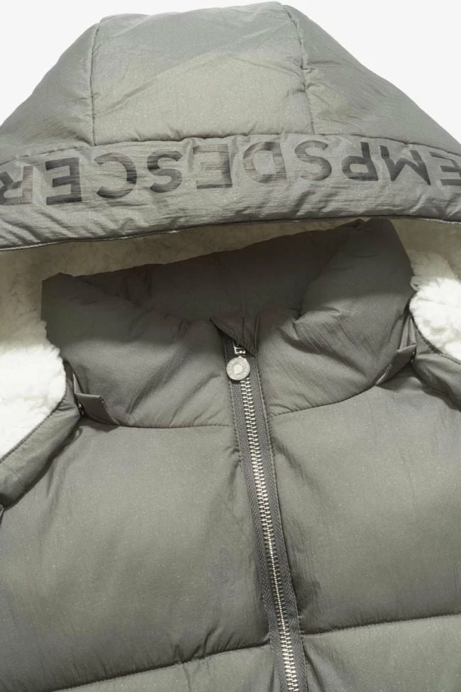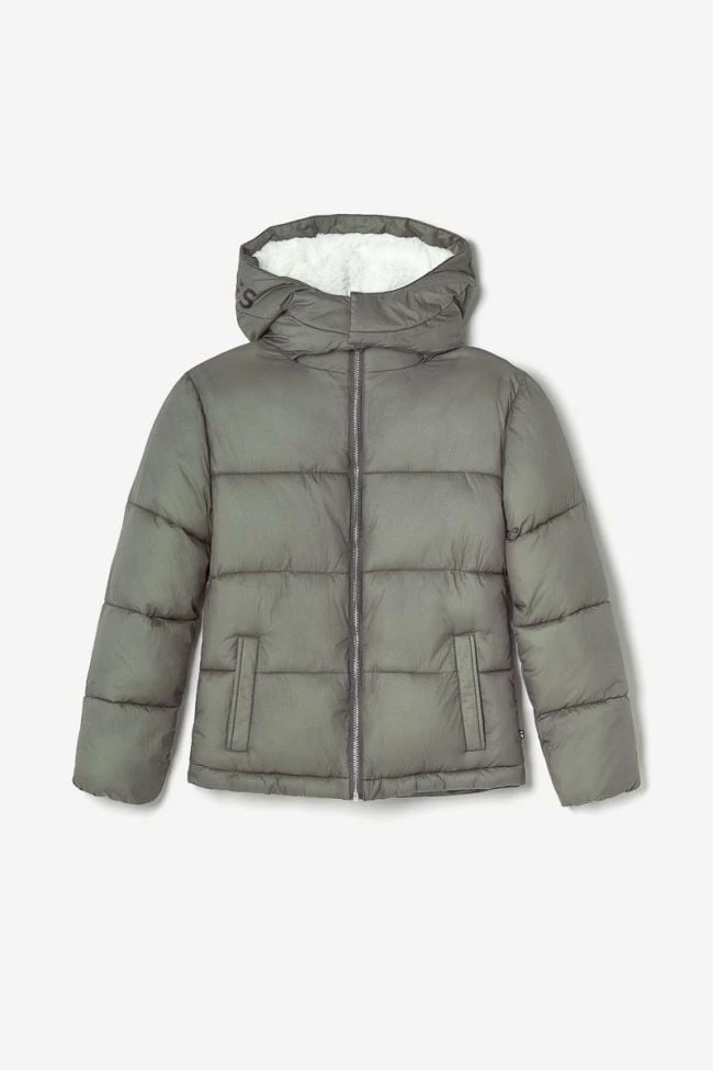 Doudoune Lerinagi idéale pour l’hiver avec sa doublure beige en polaire douce et chaude mais également très tendance avec sa matière kaki pailletée, sa fermeture zippée argentée et son imprimé noir personnalisé LTC sur la capuche. Pour plus de confort, une capuche amovible, deux poches à boutons pression à l’avant et une poche intérieure complètent la pièce.