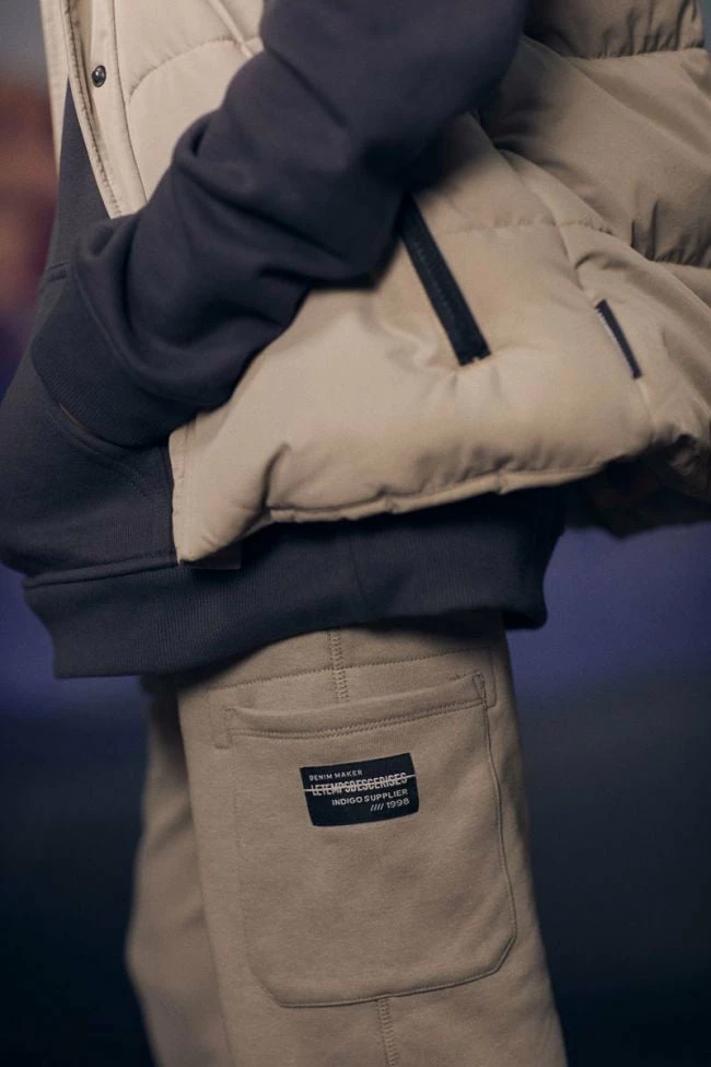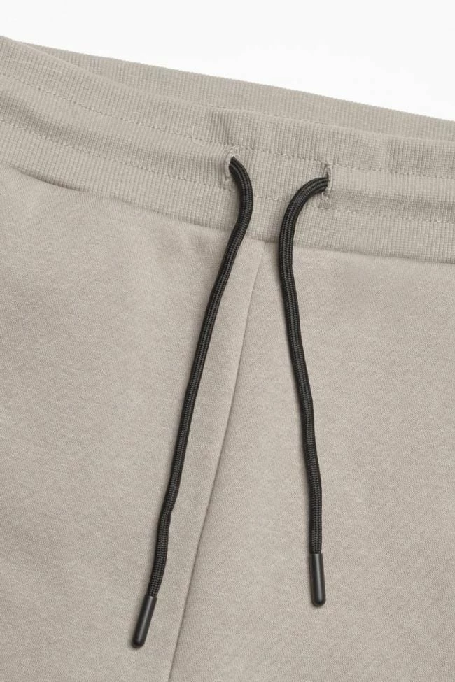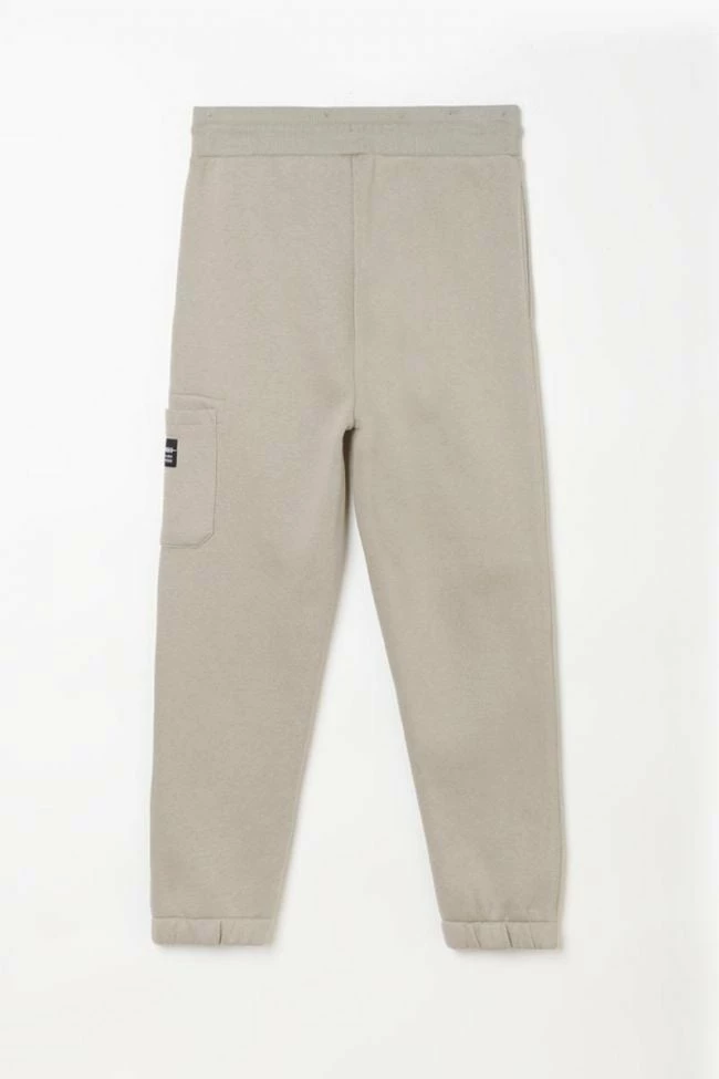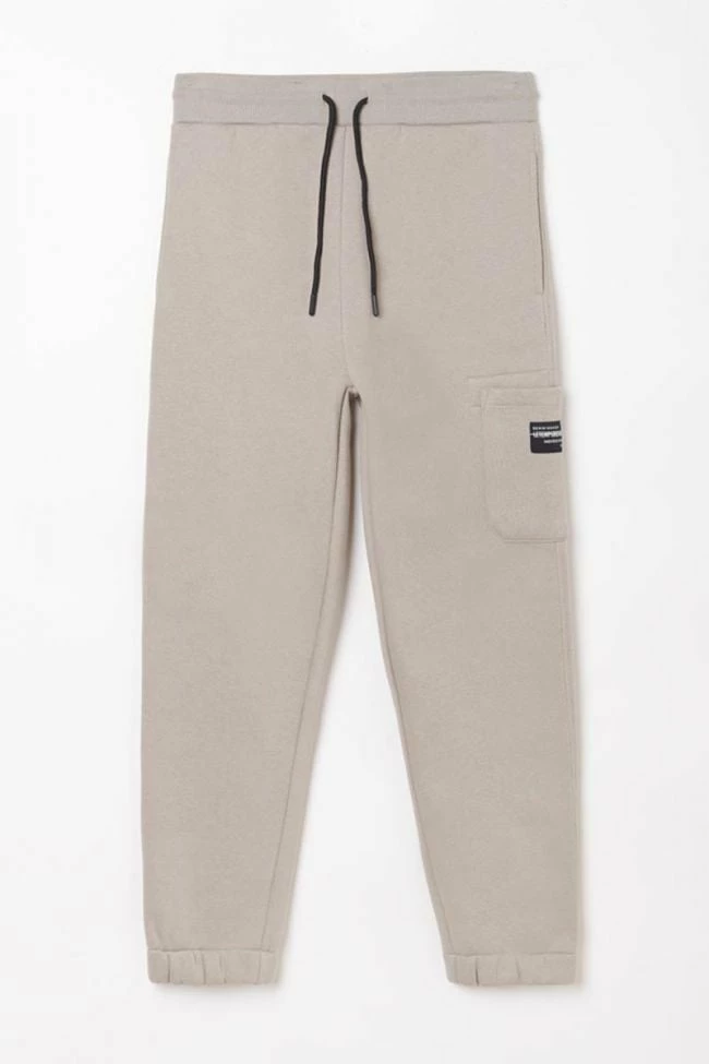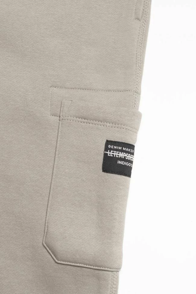 Jogging Yotybo gris beige avec poches italiennes et poche carrée latérale habillée d’un écusson noir personnalisé Le Temps des Cerises.
