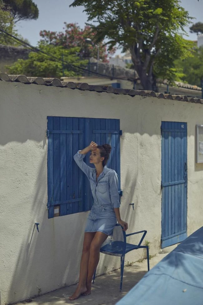 Cette jupe Alofi en jeans bleu clair est la pièce tendance et originale de votre dressing avec sa fermeture boutonnée asymétrique.