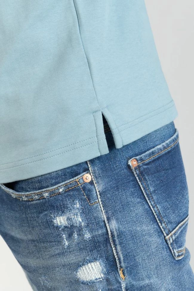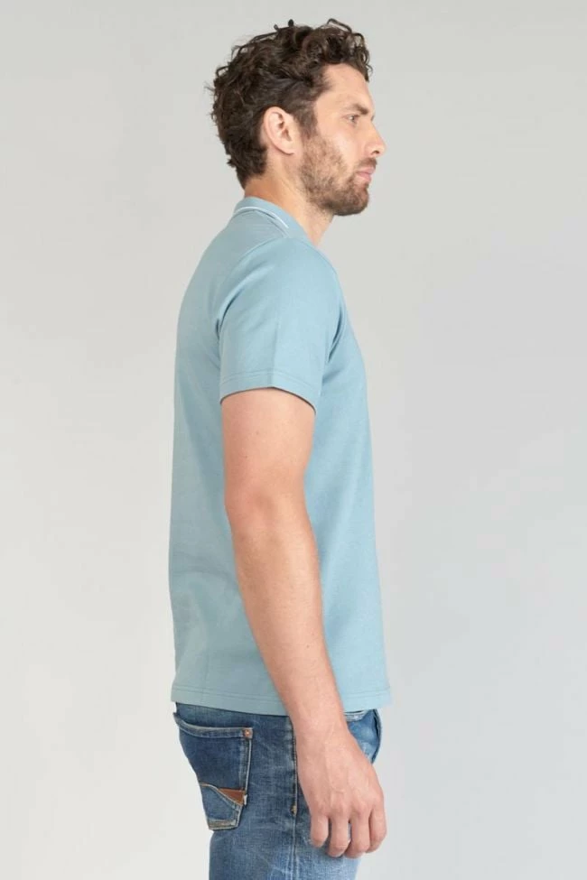 Ce polo Aron bleu-gris au toucher doux agréable allie élégance et tendance avec ses détails comme son col avec liseré blanc et son ouverture avec liseré coloré et boutons personnalisés « Le Temps des Cerises ». Pour le détail, un écusson personnalisé « Le Temps des Cerises » sur la poitrine et un mini liseré drapeau bleu, blanc, rouge au dos au niveau du col.