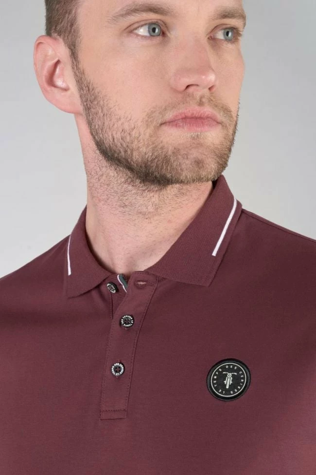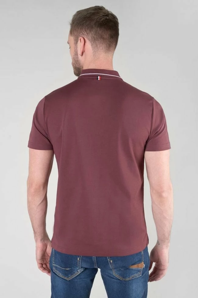 Ce polo Aron lie de vin au toucher doux allie élégance et tendance avec ses détails comme son col avec liseré blanc et son ouverture avec liserés colorés et boutons personnalisés « Le Temps des Cerises ». Pour le détail, un écusson personnalisé « Le Temps des Cerises » sur la poitrine et un mini liseré drapeau bleu, blanc, rouge au dos au niveau du col.