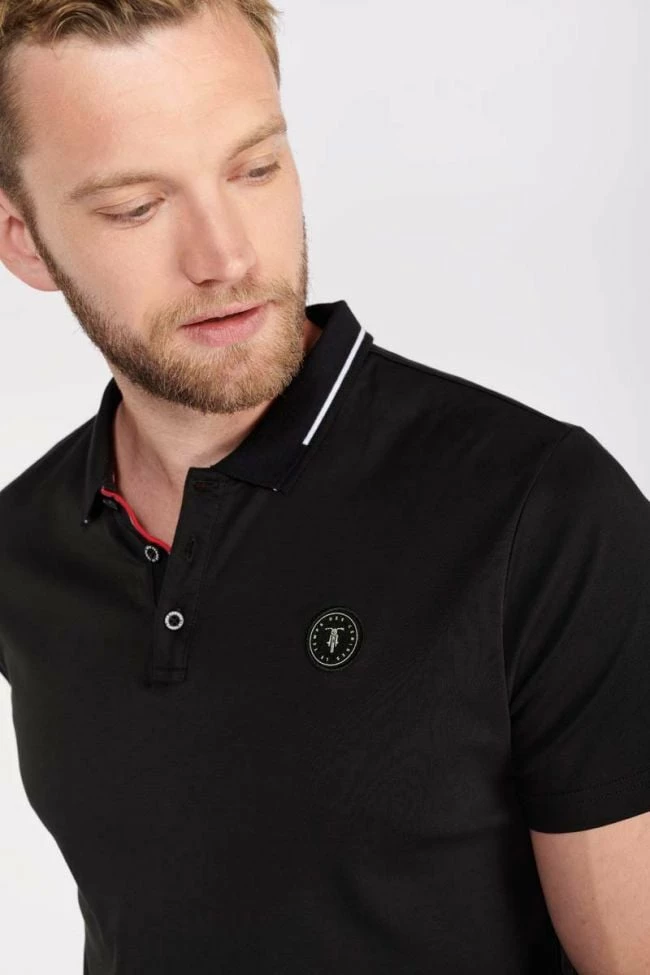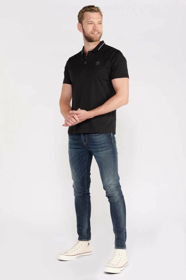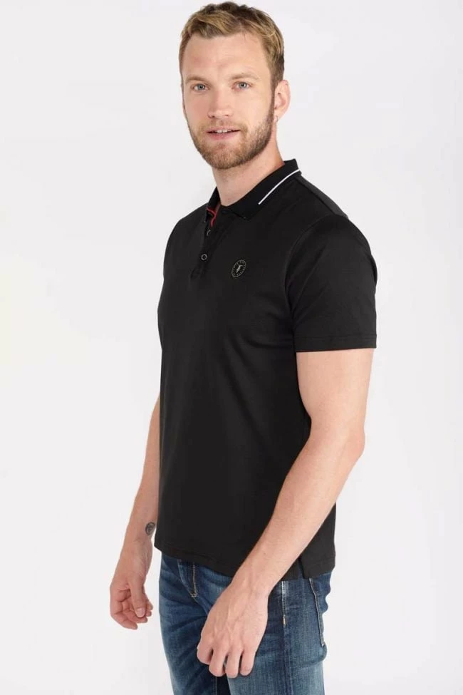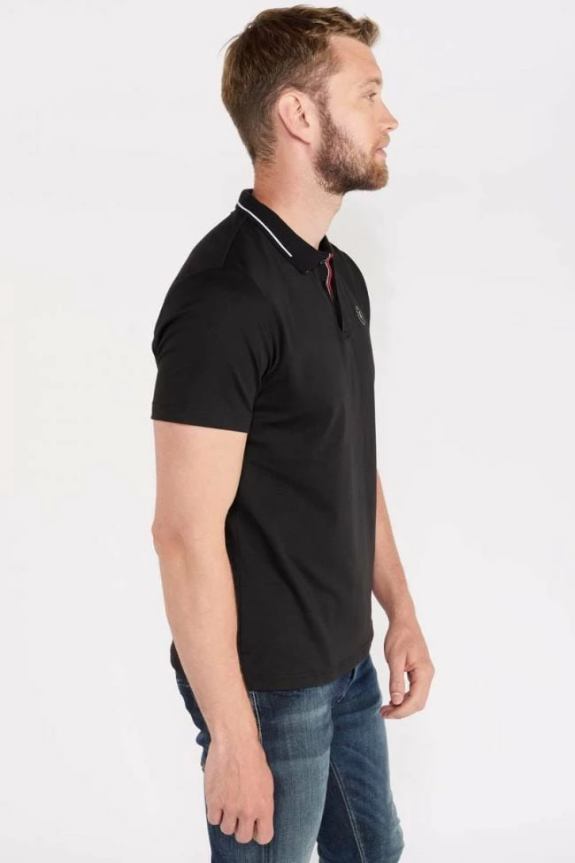 Ce polo Aron noir au toucher doux allie élégance et tendance avec ses détails comme son col avec liseré blanc et son ouverture avec liserés colorés et boutons personnalisés « Le Temps des Cerises ». Pour le détail, un écusson personnalisé « Le Temps des Cerises » sur la poitrine et un mini liseré drapeau bleu, blanc, rouge au dos au niveau du col.
