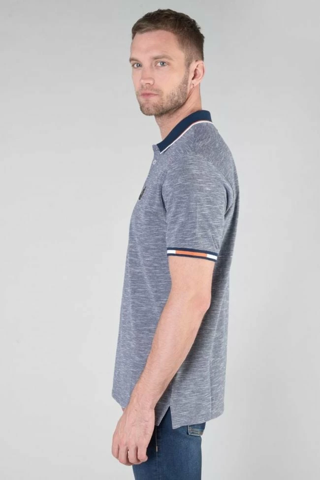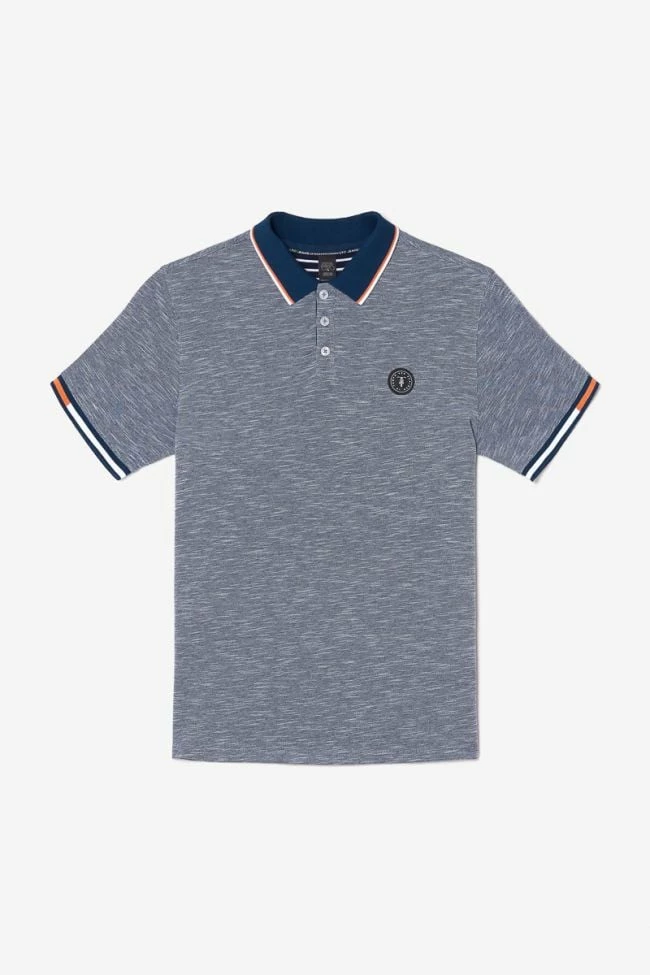 Ce polo Polar est très élégant avec son jersey bleu marine à l’effet chiné et son col ainsi que ses manches avec liseré blanc et orange pour apporter du style à la pièce. Enfin, pour le détail, un écusson Le Temps des Cerises sur la poitrine et un liseré bleu, blanc, rouge au dos au niveau du col.