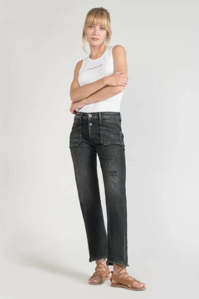 Le Pricilia ou le jeans signature de la marque grâce à ses détails particulièrement travaillés. Sa taille bénéficie d’un effet gainant grâce à son bloc haut orné de grandes poches plaquées et d’un double boutonnage visible. Ses jambes droites et ses chevilles larges s’accompagnent d’une longueur 7/8ème à bords francs pour un look vintage et tendance.