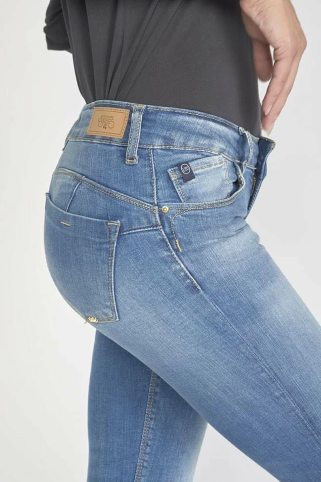 Coupe ajustée qui sculpte le corps. Belles fesses garanties avec l’effet pulp et les poches arrières idéalement placées. S’adapte à toutes les morphologies, que vous soyez minces ou rondes, petites ou grandes ! Taille intermédiaire, ni haute, ni basse.