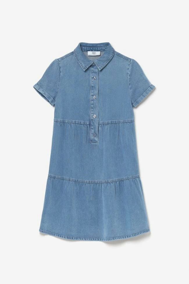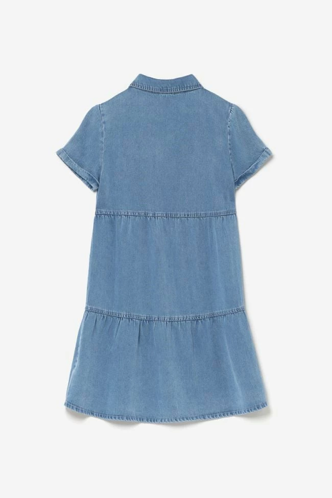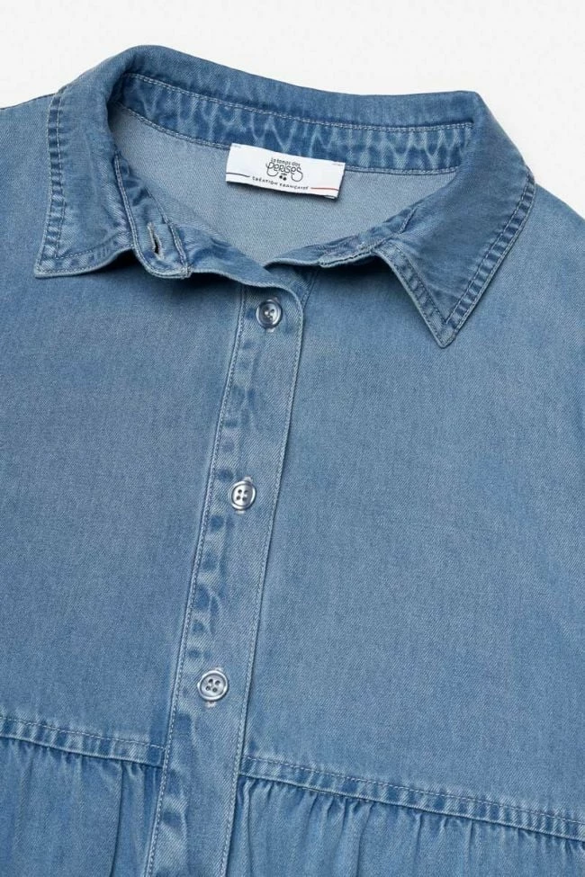 Jolie robe Sunogi idĂ©ale pour l’Ă©tĂ© avec son tencel bleu denim lĂ©ger. Son col chemise avec boutons nacrĂ©s bleu en guise de fermeture apporte du style Ă la piĂšce.
