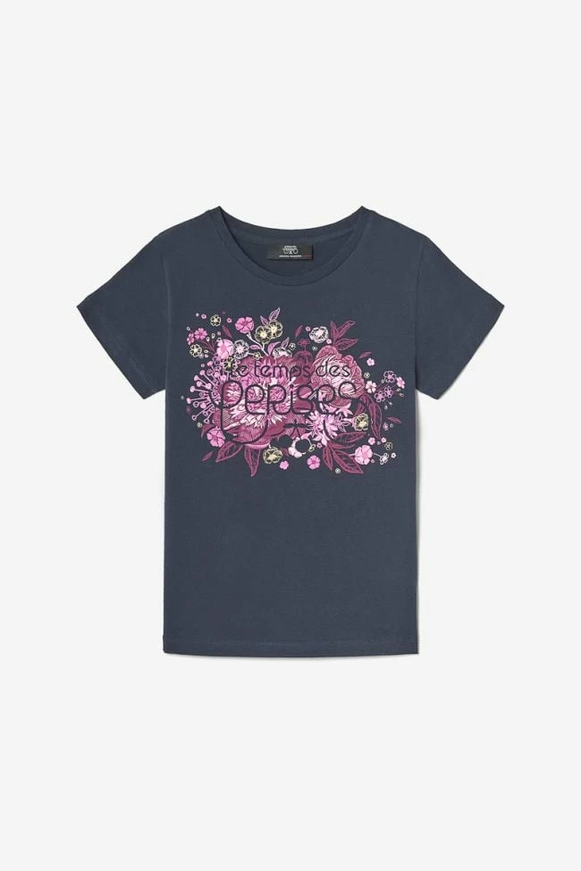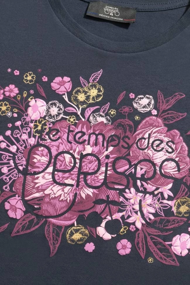 T-shirt Gracygi au style tendance très girly avec son imprimé, personnalisé « Le Temps des Cerises », à motif feuilles et fleurs dans les tons de rose avec des touches dorées.