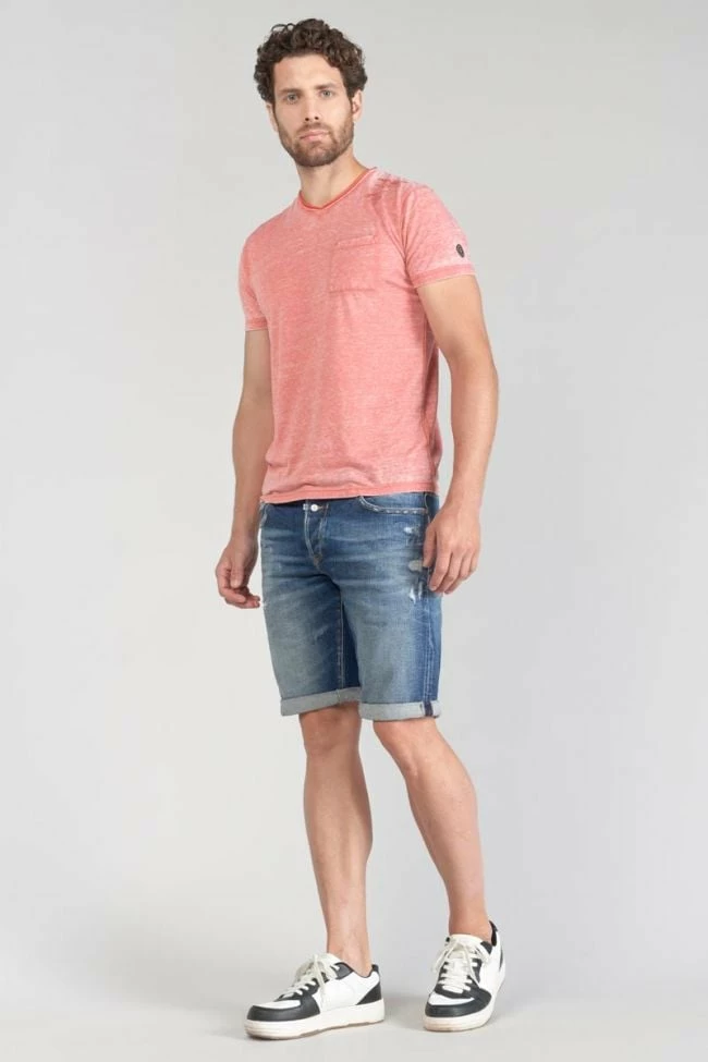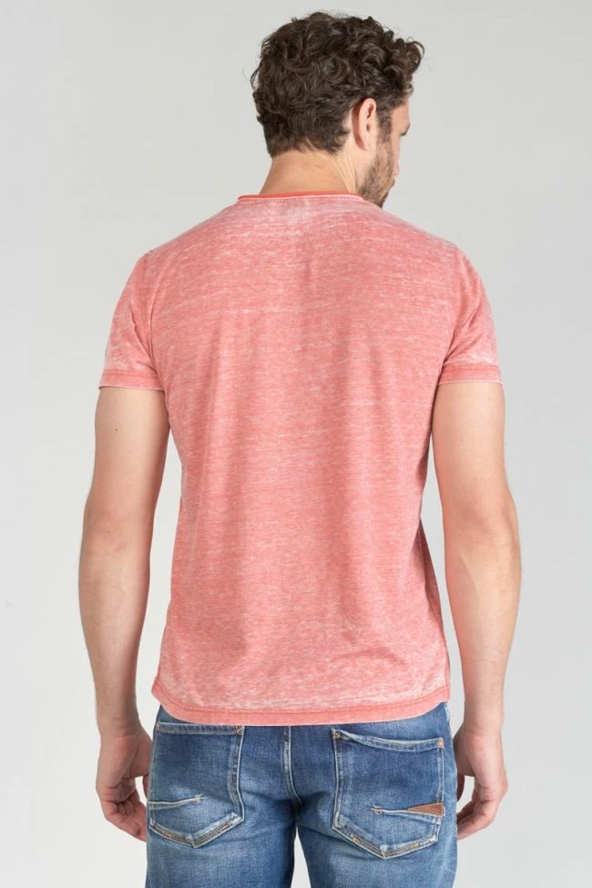 Ce t-shirt Mavoc a un look casual avec son tissu léger rouge chiné à l’effet délavé, son col en V double bicolore avec bords roulottés et son inscription rouge au niveau de l’épaule gauche. Pour le détail, une poche poitrine et un écusson Le Temps des Cerises sur la manche gauche.