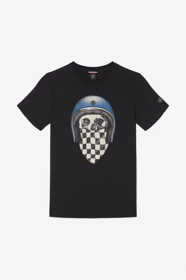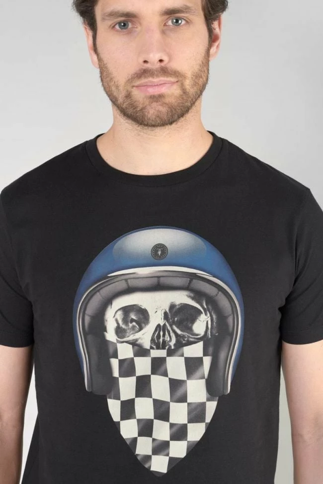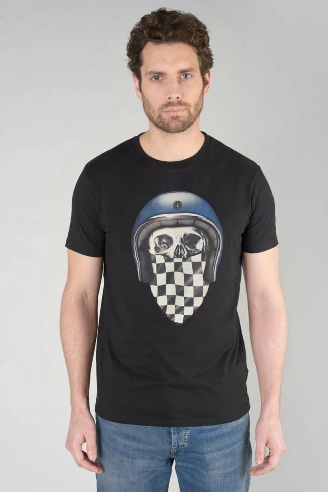 Ce t-shirt Rodi noir vous donnera un look rock avec son imprimé fantaisie tête de mort et bandana à damier. Pour le détail, un écusson Le Temps des Cerises sur la manche gauche.
