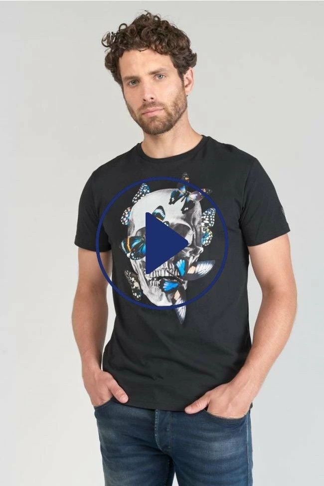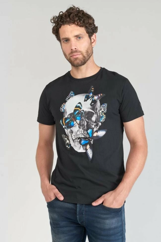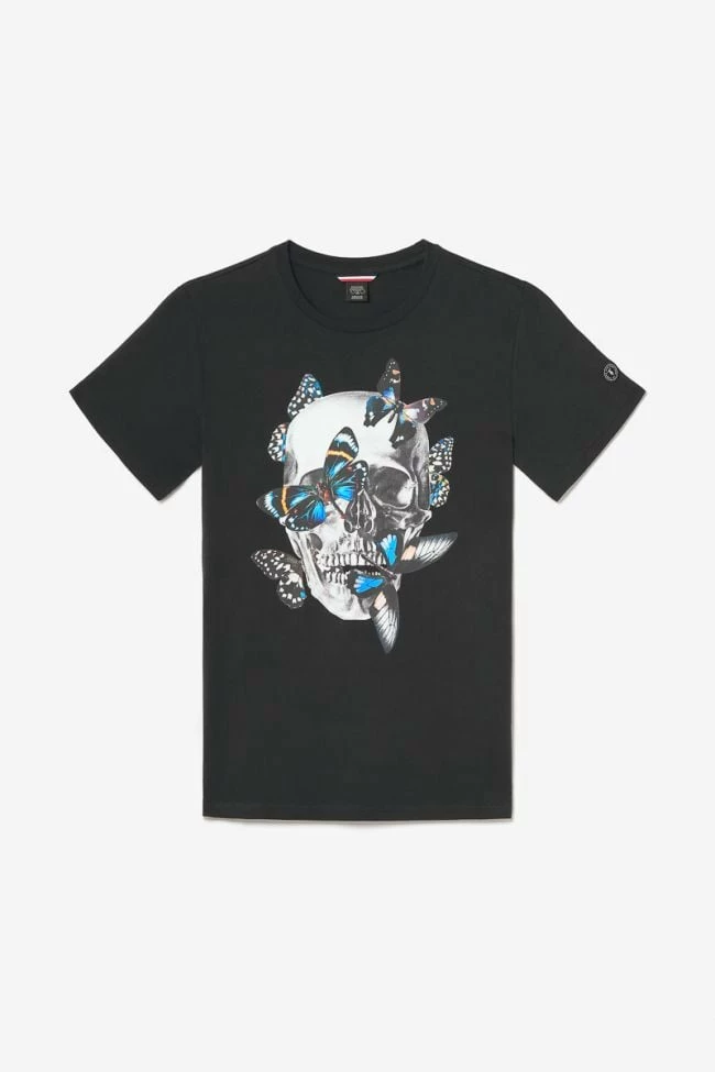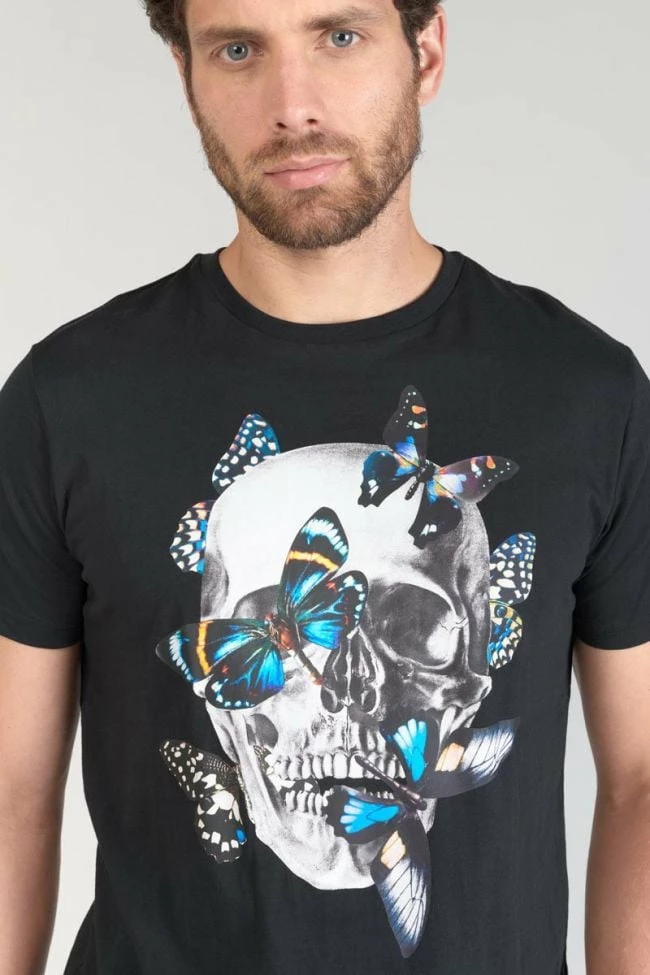 Ce t-shirt Usma noir a un look rock avec son imprimé tête de mort accompagné de papillons colorés. Pour le détail, un écusson Le Temps des Cerises sur la manche gauche.