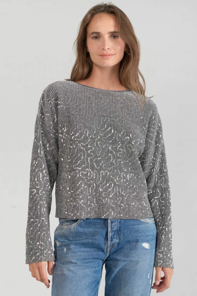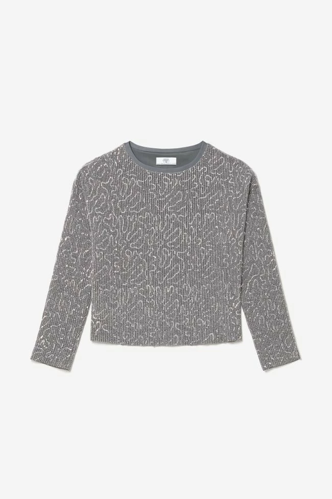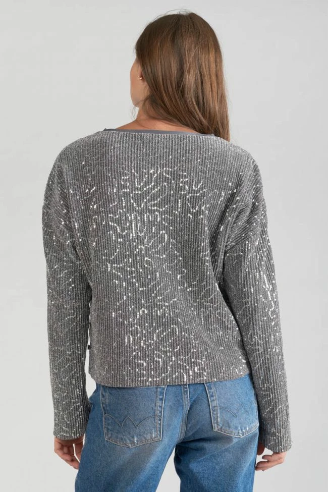 Ce top Able est parfait pour vos soirées habillées avec son tissu plissé argenté parsemé de sequins argentés pour un côté rock. Le top est doublé pour plus de confort.