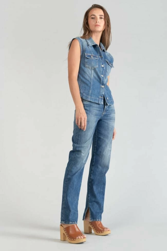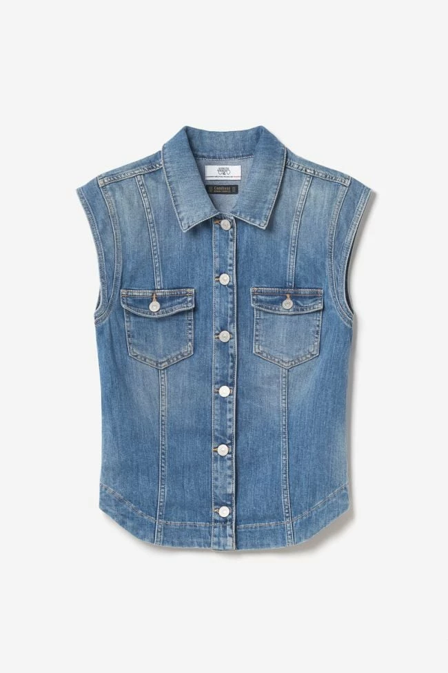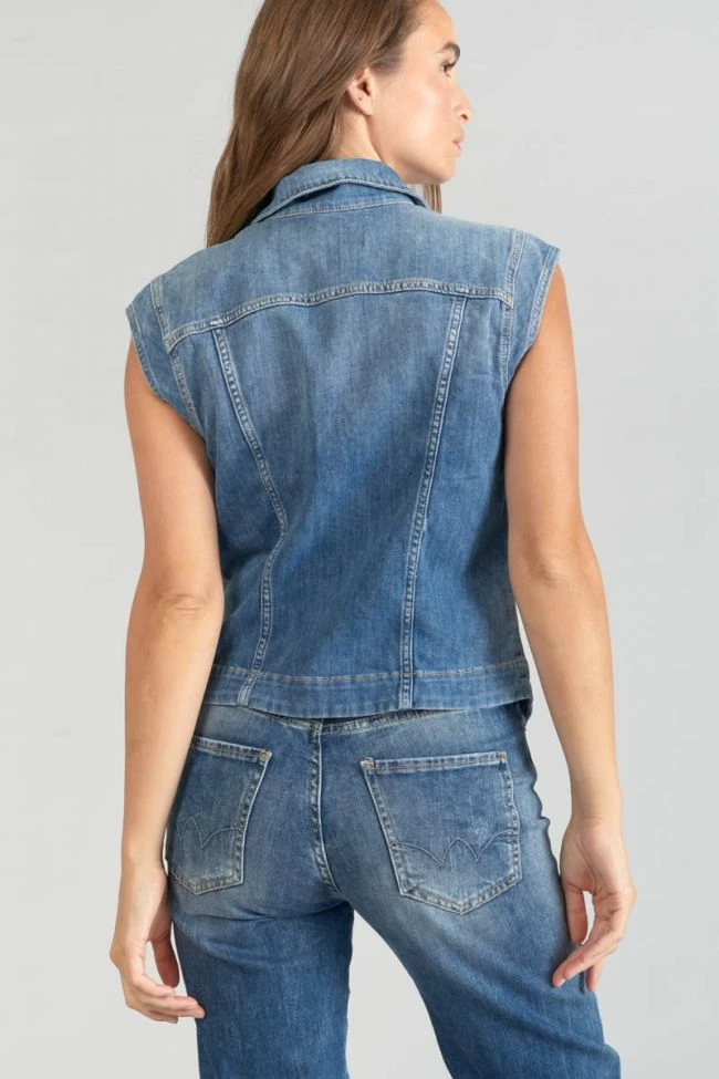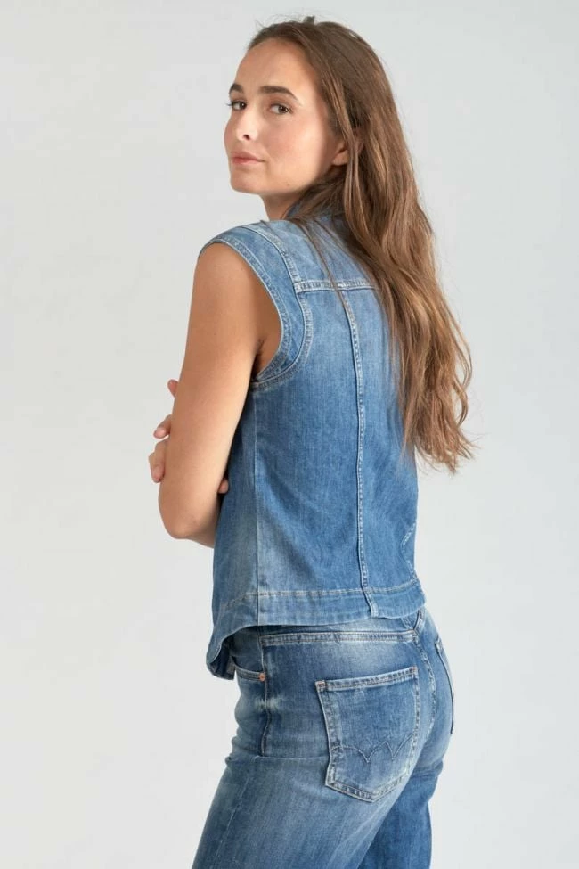 Cette veste Galinat est parfaite pour compléter vos tenues et y apporter une touche tendance avec sa coupe sans manches, son jeans bleu légèrement délavé et ses deux poches poitrine à rabat.